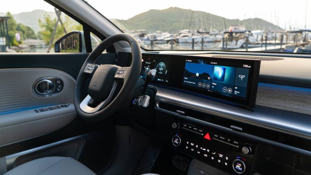 Hyundai IONIQ 9, 12,3 inç gösterge paneli ve 12,3 inç multimedya ekranından oluşan panoramik kavisli ekrana sahip. Vites kolu direksiyon kolonuna entegre edilmiş. Modelin akıllı çekme modu, römork ağırlığını algılayarak menzil tahminini optimize ediyor ve AWD versiyonlarda 50:50 tork dağılımını koruyor.