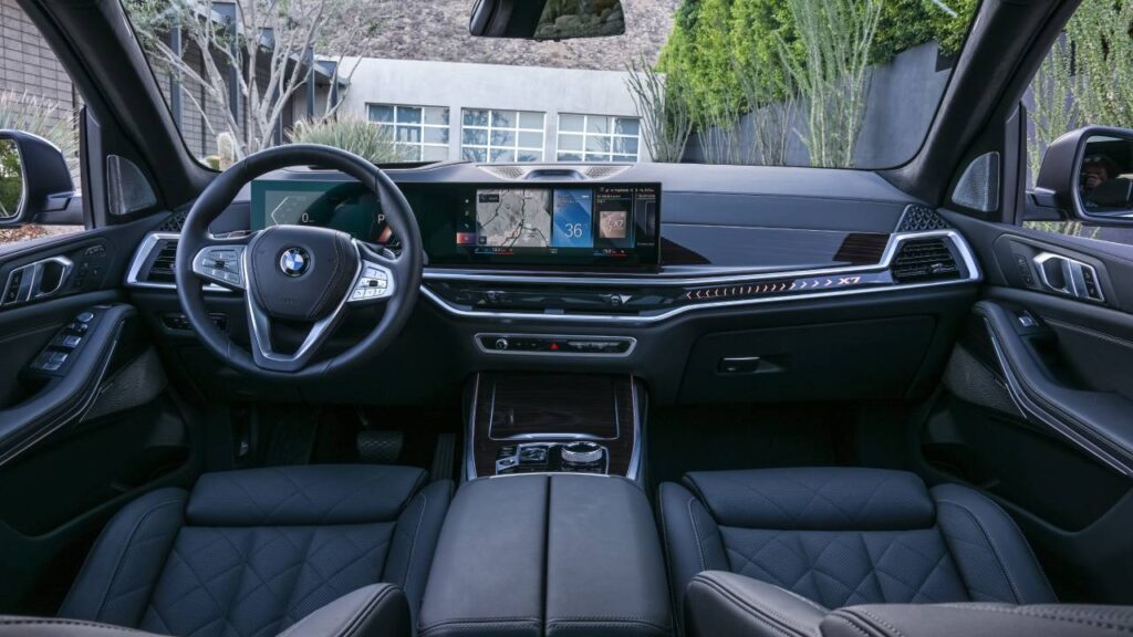 BMW X7’de ise iç mekan deneyimi daha ileri bir noktaya taşınıyor. İnce tasarıma sahip havalandırma kanalları, X7 vurgulu aydınlatmalı iç kaplamalar, CraftedClarity cam yüzeyli kontrol paneli ve Individual walknappa deri ön panel, kabinde lüks algıyı derinleştiriyor. Elektrikli, havalandırmalı ve masaj fonksiyonlu ön koltuklar sekiz farklı masaj programı sunarken; ön ve arka koltuk ısıtma, Konfor-Isı Paketi, ısı ayarlı bardak tutucular ve arka cam perdeleri yolculuk konforunu üst seviyeye taşıyor.